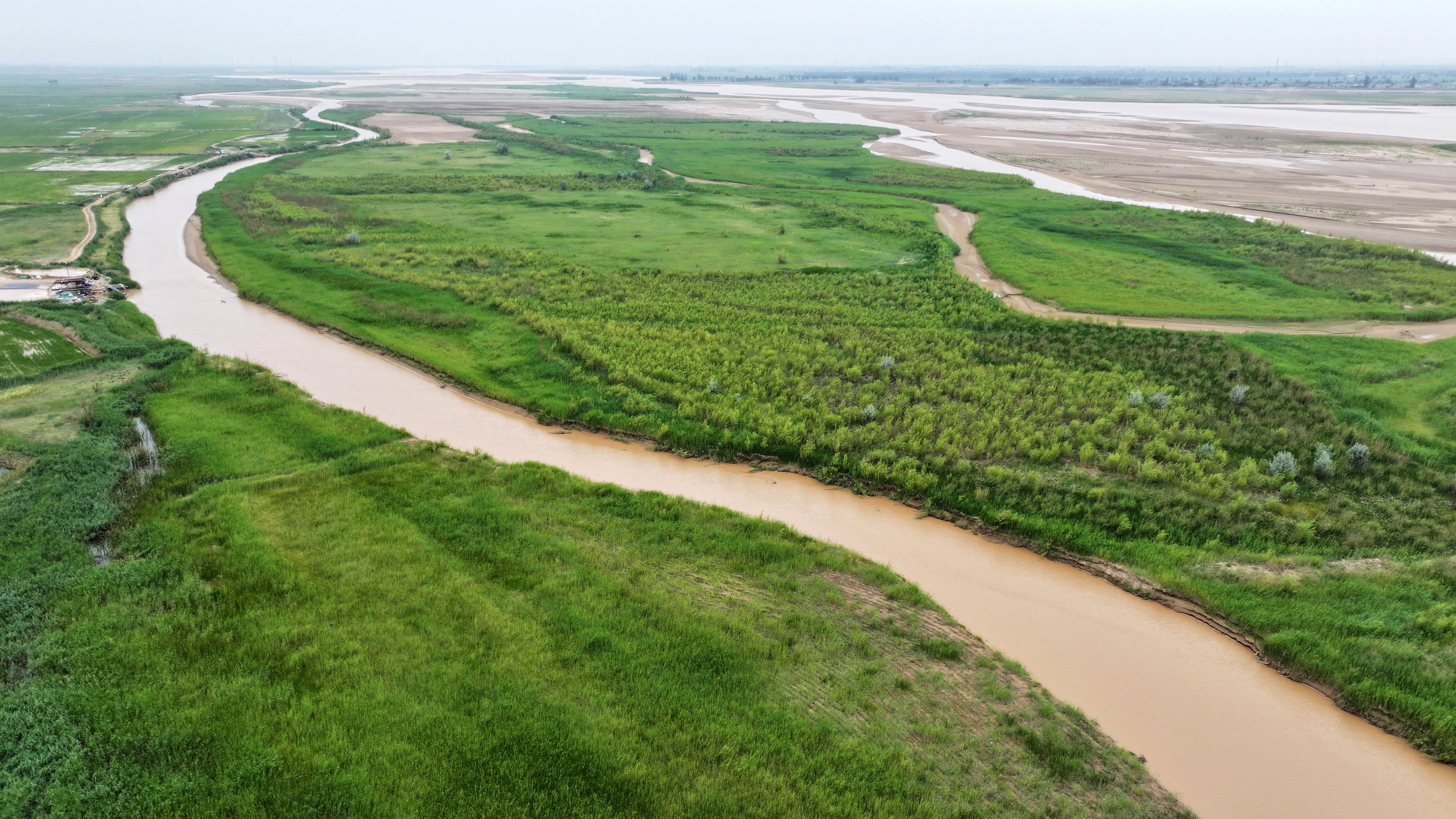 这是2025年6月22日在宁夏平罗县境内拍摄的黄河滩涂湿地(无人机照片)。新华社记者 王鹏 摄 改革和法治,恰如鸟之两翼、车之两轮。改革进入攻坚期和深水区,更需筑牢法治之基、发挥法治之力,护航进一步全面深化改革劈波斩浪。 修改代表法,在法治轨道上推动人大代表工作高质量发展;修改监察法,推进监察工作规范化法治化正规化……法治利剑披荆斩棘,有力确保改革落实。 加强人民当家作主制度建设,落实和完善司法责任制,进一步规范认罪认罚从宽制度适用,着力推进信访工作法治化……协同推进立法、执法、司法、守法各环节改革,法治体系全面提升。 行法治之力、积法治之势,“中国之治”的基石更巩固、效能更显著,推动国家治理体系和治理能力现代化迈入更高境界。 坚持以人民为中心,以改革之力为民解忧、为民谋利—— 2025年1月,春节前夕,习近平总书记前往辽宁考察,来到经过集中改造的沈阳大东区长安街道长安小区,走进居民家中看望。 老旧小区改造,一头连着民生福祉,一头牵着城市发展。更好推进以人为核心的新型城镇化,习近平总书记念兹在兹。 考察中,习近平总书记指出:“抓改革要进一步聚焦问题、突出重点、破解难点”“要坚持城乡融合发展,推进以县城为重要载体的新型城镇化建设”。 2024年7月,《深入实施以人为本的新型城镇化战略五年行动计划》印发。从进一步深化户籍制度改革到健全进城落户农民农村权益维护政策,从提升城际通勤效率到推进城镇老旧小区改造……行动计划提出4项重大行动、19项重点任务及有关政策措施,与人民群众息息相关。 为了人民而改革,改革才有意义;依靠人民而改革,改革才有动力。 一年来,进一步全面深化改革始终以增进人民福祉为出发点和落脚点,从人民整体利益、根本利益、长远利益出发谋划和推进。