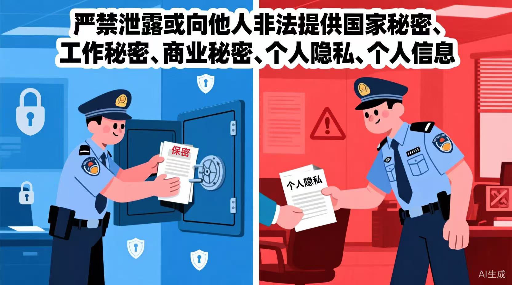 严禁泄露或向他人非法提供国家秘密、工作秘密、商业秘密、个人隐私、个人信息。 违反上述规定的,按照有关规定严肃处理。 | ||||