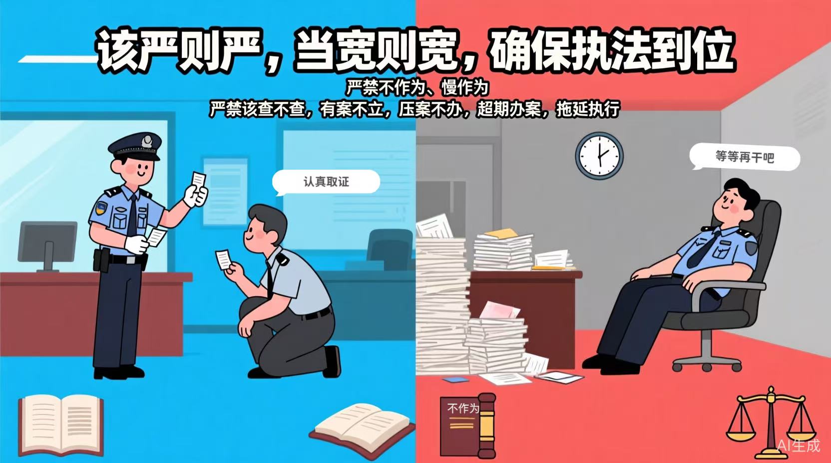 该严则严,当宽则宽,确保执法到位。严禁不作为、慢作为。严禁该查不查、有案不立、压案不办、超期办案、拖延执行。 三、严格按照法律规定和客观事实执法。