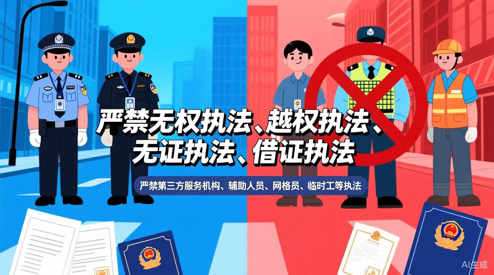 严禁无权执法、越权执法、无证执法、借证执法。严禁第三方服务机构、辅助人员、网格员、临时工等执法。 二、严格做到积极履行法定职责。